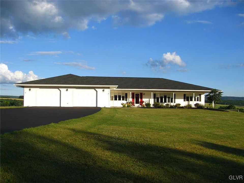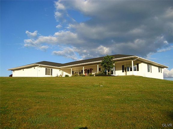 Enjoy breathtaking sunrises & sunsets from this beautiful, hilltop home. This spacious, sprawling ranch home sits on over 4 acres. The home features a formal living room & dining room each w. bow window & hard wood floors, updated kitchen w. cooking island & beautiful views, breakfast nook, & family room w/ wood burning fireplace & glass doors to the patio. The large master bedroom has a bow window, full bath, & walk in closet. Two additional bedroom suites, full bath, & main floor laundry complete the home. The lower level could be finished & garage door makes parking lawn equipment and vehicles in the lower level. The home has an oversized 2 car garage with room for workout equipment or additional storage. Experience the ever changing tapestry of colors and seasons from every window of the home. Strategically located, the property is just minutes from Rts 309, 443, and 100. It is a short commute to the Lehigh Valley and Philadelphia.