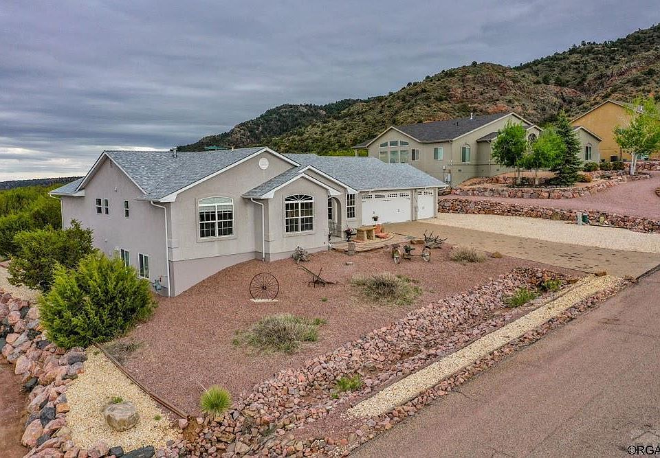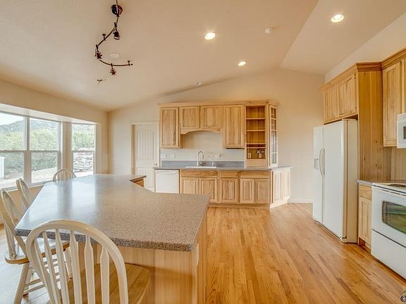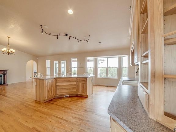 Fantastic Ranch style home w/full unfinished basement on an absolutely gorgeous view lot at the top of Greenhorn Dr. This home is in impeccable condition w/all beautiful solid hardwood flooring except for ceramic tile in both bathrooms and the laundry and mud/pantry room. This home is loaded with upgrades starting at the entry with custom tile and a deco tiled medallion. Covered front porch and very nice sized covered back patio. Kitchen has beautiful hickory 42" upper cabinets w/ crown molding with a large center island and quartz countertops. Formal dining rm and a large office/den/3rd bedroom with french doors. The possible third bedroom just needs an armoire or add a closet. Very open floor plan w high cathedral ceiling in the "Great Room" and large windows throughout the home to take in the views. The home has extras like a surveillance system, in the laundry rm there is a deep Jacuzzi laundry sink, automatic light shut offs, a central vacuum system w/all attachments and plant shelves in the living rm. Included in the master bath is a huge walk-in shower, double sinks w quartz and a walk-in closet w/custom cabinetry. Full unfinished bsmt fully insulated w/full fin. bathroom.