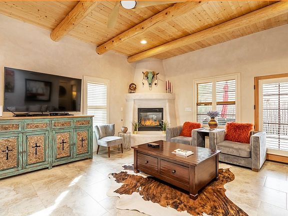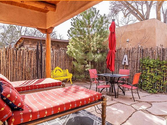 Welcome to your oasis in the heart of Santa Fe! Convenient Eastside location steps from the Plaza and Canyon Road on two dead-end streets! Gated compound with coveted garage! Beautifully designed and fully decorated home. High ceilings and skylights fill the home with bright, lofty light. Radiant floor heating and splits for AC. Attached private portal and attractive landscaping for a quiet cup of coffee or glass of wine or for entertaining guests. Plenty of off-street parking. Coffee shops and fantastic grocery store that's been here since 1896 around the corner!