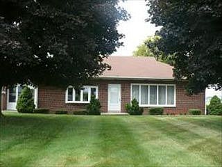 Brick ranch home situated on .59 acres nestled between farmland. Home features 3BR's, 1BA, eat in kitchen, large living room with fireplace, partially finished basement with fireplace. All appliances and AHS warranty included.