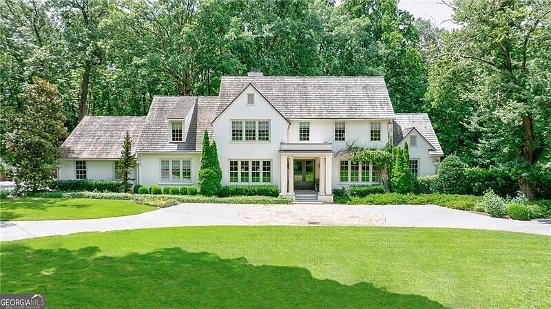 A perfectly charming Spitzmiller & Norris transformation - classic and quietly luxurious, one of Sandy Springs' most beautiful and livable homes. Tucked behind a chippendale gate and approached by a gracious half-circle drive, this masterful 2014 expansion and renovation blends timeless cottage architecture with elegant finishes and modern luxury. Every detail is intentional, from the chic soft white fa ade with custom millwork to the cedar shake accents and designer lighting. Step inside to find light-filled spaces adorned with Schumacher wallpaper, custom cabinetry, hidden jib-door closets, and hardware selections that reflect thoughtful craftsmanship. The heart of the home is a chef's dream kitchen, anchored by a 72" Wolf range with French cooktop, Sub-Zero refrigeration, Miele dishwasher, butcher block prep area, appliance garage, and ample storage. The kitchen flows seamlessly into a large, vaulted screened porch with fireplace, perfect for year-round entertaining. The main level guest bedroom could easily function as a second primary suite. Upstairs, the primary suite is a serene retreat, featuring a fabulous dressing room, glamorous bath with all-marble tub and shower, custom cabinetry by Duquette, and luxe Scalamandr wallpaper. Additional bedrooms are generously sized with walk-in closets and en-suite baths, including a fun Jack-and-Jill layout with a shared playroom or bonus space. Designed for modern living, the home includes a mudroom with lockers, proper laundry and storage areas, home manager's office, gym (or additional bedroom), two car garage, and StreamLabs smart water system and reverse osmosis filtration. There's no shortage of fun with an inviting billiards room with a hidden barn door that reveals a full speakeasy: bar sink, Sub-Zero mini, dishwasher, wine cellar, and full bath. Outside, bluestone hardscapes lead to a beautifully landscaped pool terrace surrounded by blooming flowers and mature hydrangeas, offering complete privacy all the way to the fenced property line.