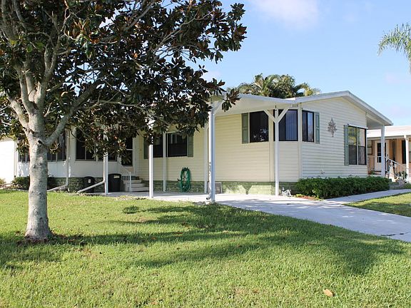 Beautiful well maintained FURNISHED home in 55+ active adult pet friendly community, comes with a "Share" in coop therefore NO LAND LEASE FEES! Tile throughout, open floor plan featuring a large kitchen with newly resurfaced cabinets, breakfast nook plus separate dining area with a built-in hutch. Master bedroom and second bedroom both feature walk in closets. Master bathroom has dual sinks, separate shower and large tub. Washer & Dryer included. Florida room off of the carport is completely windowed with separate A/C and view of the lake. Additional storage space with attached storage shed. New Vapor barrier and insulation!