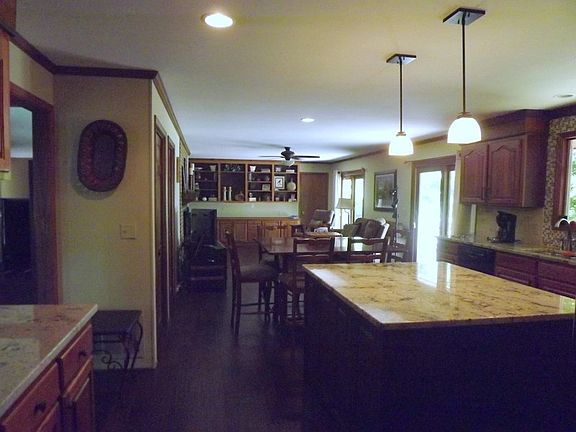Big water view, Large living spaces, bring your pool table!! Current owners have recently renovated the kitchen in 2014 with a granite Island, built in spice shelves and roll out drawers. The living room, family room and kitchen have new beautiful one level wood flooring. Kitchen window overlooks the lake.. 2 sliders to outside balcony deck with fantastic lake views. Master has balcony/deck. Master bathroom has had a total renovation, with up to date granite countertops, double sinks and glass and tile shower in 2014. Other "news" are the New hot water heater in 2014 and shingles in 2006. 2nd kitchen, dining and living room with wood burning fireplace and bedroom below with private entrance. There is a screened room for lower level water views. Hobby room and also a separate private workshop plus a truly oversized 2 car garage. Grand 26 x 30 Ironwood decking at aluminum boat dock with 6000# lift to accommodate your boat (installed in 2006) along with PWC parking.