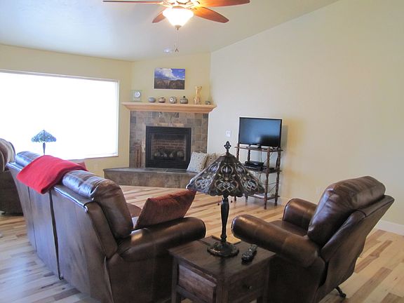 Our home is a custom full brick ranch built in 2012 by Jason Byler. There are custom finished natural hickory floors through all of the home except for tile in the baths and laundry and carpet in the master bedroom. The cabinets and vanities are solid hickory and match the floors and look great with the granite in the kitchen and baths. There is an oversized insulated 3 car garage, covered and open patios and a 48 foot long covered front porch. The HOA dues are $75 per year and provide irrigation water. The entire lawn and landscape plantings are irrigated. There are wonderful mountain views from virtually any window and showcase the Uncompahgre and Sneffels Ranges of the San Juan Mountains as well as the Uncompahgre Plateau. Our home won the award for new home of the year from the City of Montrose!
