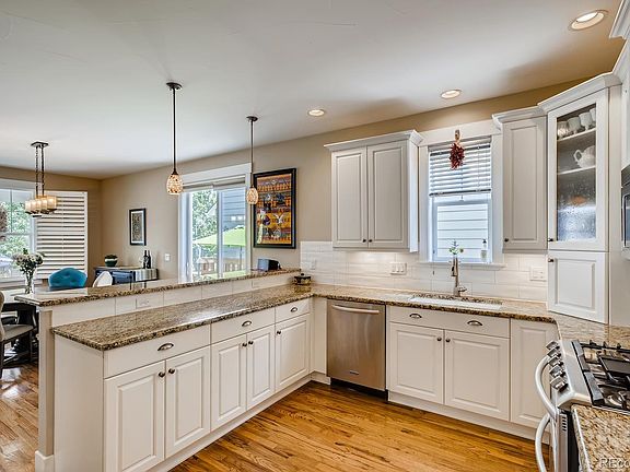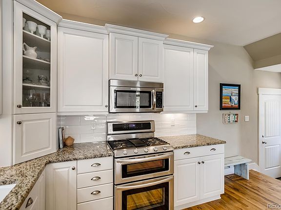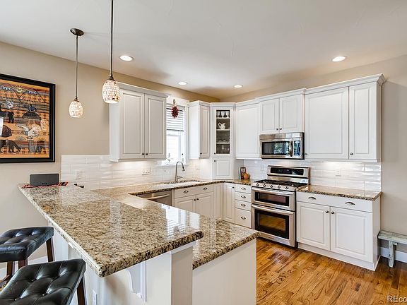 Walk to historic downtown Louisville! You don't want to miss this attractive 2 br/2.5 bath BUNGALOW at Indian Peaks SOUTH. Custom floor plan with wood floors throughout the main and upper levels, including stairs. The large kitchen showcases tall, white cabinets, a double gas/convection oven, granite counters, and a high bar. The second floor, vaulted Great Room invites you to walk onto a 20'x10' sun balcony that is great for entertaining. The finished basement includes a comfortable den, daylight bedroom with extra storage, and guest bath. Relax on the covered front porch overlooking a cute flower garden, then enjoy the secluded paved patio, which includes a hot tub! Other custom features: large, second level laundry with utility sink, private master suite with tiled bath and walk-in closet, plantation shutters on all windows, two-car garage with ceiling baskets, and dog run! Conveniently located between Louisville, Lafayette, and Boulder. Low monthly HOA includes access to the community pool, parks, and walking trails. Boulder Valley Schools to boot! This gorgeous home will go fast!
