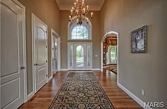 Executive Estate with 4 car garage nestled on private Golf Course. Custom Designed Ranch home with upgrades throughout & in pristine condition! Great room has soaring 3 story Atrium featuring a Floating Spiral Staircase & walk behind wet bar. Main floor office has French doors & built in bookcases. Kitchen has custom cabinets, granite, 2 ovens, gas stove, & walk in pantry. Hearth room has vaulted ceiling, stone gas fireplace. Screened in Sun Room. Private Main floor Master suite has large shower, deep tub, 2 walk-in closets, & coffered ceiling. Lower level offers Media room w/ surround sound & multilevel seating, family room w/ wet bar, gym, 3 bedrooms & 2 full baths. Home has 4 fireplaces, over-sized 4 car garage w/custom finish flooring & built-in cabinets, custom mill work (archways, crown molding, columns), whole home sound system, Anderson windows, screened sun room, sun deck, patio, pond w/ waterfall, & tank-less water heater system. See interactive floor plan online w/Photo
