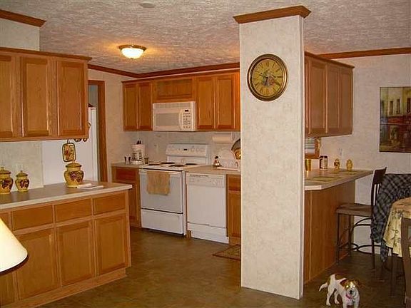 This beautiful modular home with double pane windows w/6x6 walls, ceiling fans in all the rooms, garden tub in master bedroom and large walk in closets in all bedrooms. The garage is finished w/office, work bay, and paint booth and a new commercial air compressor. Also has a large barn. Quiet place off the main road!