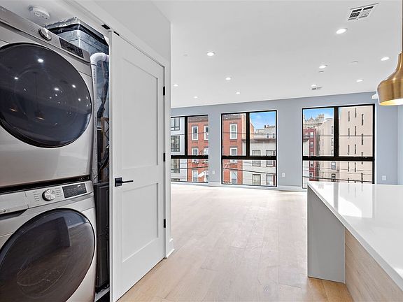 Welcome to a stylish, BRAND NEW constructed, luxury home in the heart of Hoboken. This amazing 1300 sq. ft. home has 2 bedrooms/2 bathrooms that boasts modern design, an open floor plan, high ceilings, gigantic floor-to-ceiling windows/balcony doors allowing for tons of natural sunlight, wide 7.5 inch oak plank hardwood floors throughout, Nest smart technology operated central heating/cooling systems, video intercom system, tons of closet space and a full-sized energy-efficient in unit Samsung washer/dryer. Entertainment system wires pre-run to the closet. The gourmet kitchen features top of the line stainless steel appliances, gas range, sleek custom cabinetry, kitchen island with quartz waterfall countertops, complementing Carrara backsplash, beautiful pendant lighting. Carrara tiled bathrooms include touch sensitive mirrors, soft-close floating vanities and stylish brush-nickel accents. The master bath has a rainfall shower system with a double vanity, and recessed lighting. Bedrooms include access to a private balcony. The master bedroom includes a walk-in closet. Common area includes a large Rooftop Terrace. Excellent location easily accessible to Church Sq. Park and convenient access to light rail station, NJ Transit bus, trains, PATH and ferry. Short walk to Hoboken restaurant scene. Enjoy your morning coffee on a sunny east facing kitchen and relax in the evening in your bedroom watching the sunset. Come take a tour and make it your home!