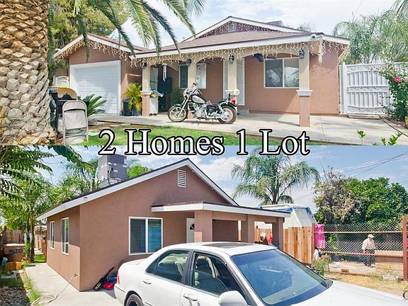 Amazing opportunity!!! 2 homes on 1 lot, extensive rehab on front house. Front house 3 bed, 2 bath, new Central A/C, newer roof, fresh painted, outside be stucco with acrylic, updated windows, kitchen, flooring, washroom, etc. to many new things to mentioned. Just a great home. Back house built on 2016, 1 bed, 1 bath, already rented. 2 separated Electric and Gas meters. Live on the front collect rent from the back or bring in the entire family. Solar system, very low bills. Video cameras system will stay.