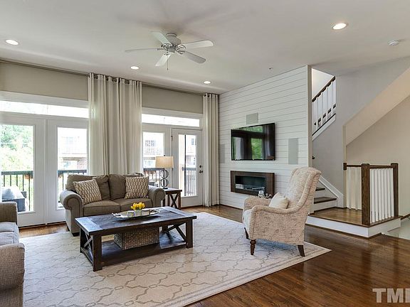 Stunning end unit condo! Open floor plan with large center island kitchen and lots of natural light. Overlooks community park. Recent upgrades include built-in desk area with quartz countertop, shiplap feature wall with ethanol fireplace, upgraded flooring from carpet to tile on lower level, custom master closet, 11 speaker whole home audio, and more. See features list. Note that 3rd bedroom/bonus room is on LL and does not have privacy door. Walk to shops, restaurants, and downtown events!