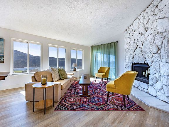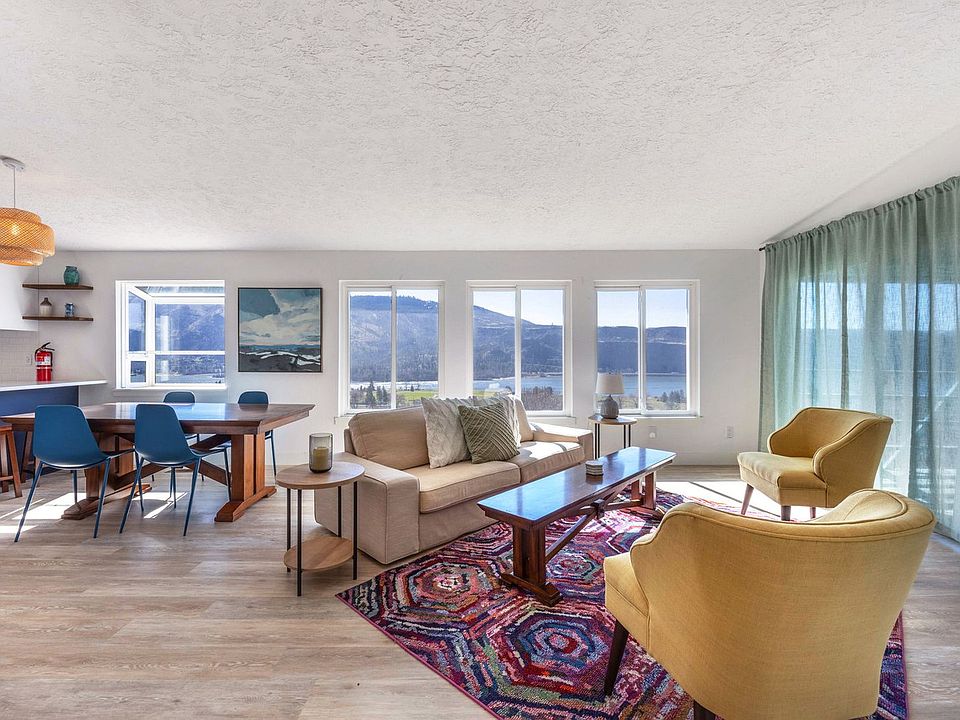 Welcome to Wind View, overlooking the majestic Columbia Gorge River and the town of Lyle, Washington. Step into a living space designed for relaxation and enjoyment, with lots of windows framing panoramic views of the Columbia Gorge River, creating a seamless connection between indoor comfort and the awe-inspiring natural beauty outside. The home boasts three bedrooms, each offering its own unique charm and comfort. The master bedroom features an en-suite bathroom. There is a full bathroom in the hallway on the main level, and downstairs there are two more full bathrooms. The gourmet kitchen is a chef's dream, featuring high-end appliances, spacious countertops, and everything you need to whip up delicious meals with ease. Share memorable moments with loved ones as you prepare and enjoy meals together in this inviting space. Step outside to your private oasis, where a spacious deck beckons you to soak in the beauty of the Columbia Gorge River. Whether you're sipping your morning coffee, dining alfresco, or stargazing under the vast night sky, this outdoor retreat is the perfect place to relax and recharge. This home has central AC, heat, Wi-Fi, and a washer and dryer. The garage is not for guest use. Situated in the charming town of Lyle, Washington, your home is conveniently located near a variety of outdoor activities, including hiking, biking, and wine tasting. Explore nearby attractions or simply take in the natural beauty of the surrounding landscape. Looking for a companion home? Point Lyle is an excellent option and is located right below Wind View. No pets are allowed.