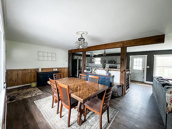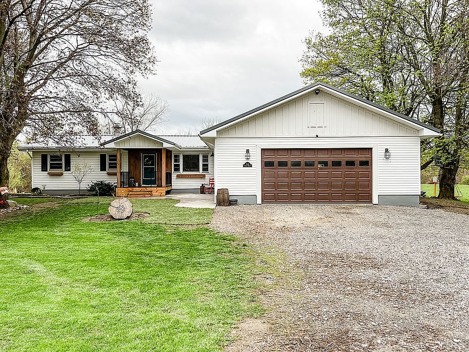 Come take a look at this newly renovated ranch with an open floor plan. This three bedroom 1.5 bath features breakfast bar seating, large mudroom with first floor laundry and oversized 2.5 car garage (floor with center drain 2022). The spacious backyard has room for your hobby farm and views of open field/woods. The large covered patio added in 2021 is perfect for outside dinners, and hosting family gatherings. New well and pump 2013, new water softener system with upgraded copper piping 2016, full bathroom renovated 2016, half bath new 2020, new metal roof 2019, forced air duct work cleaned 2018 and wood stove capable of heating the entire house! Large play set stays with the home. The 10x12 shed and most other outbuildings stays with the home. The location is perfect to get around WNY. Halfway between Buffalo and Rochester, 5 minutes from I-90.