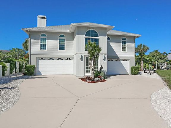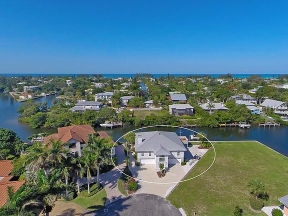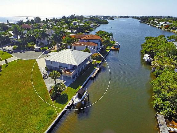 Beautifully placed at the gateway of Bimini Bay, this elevated canal home offers 134 feet of waterfront with two docks and a boat lift. Designed by the current owners, this well-built home is meticulously maintained and includes thoughtful features like a large walk-in climate controlled wine and beverage storage as well as an oversized walk-in dry pantry and lots of storage. Interior highlights include a bright, open floor plan with volume ceilings and a spacious master suite with water views, walk-in closet and French doors lead to a covered deck with built-in hot tub/spa. The large living and dining area features built in buffet, art nook, fireplace and French doors opening to the spacious lanai overlooking the canal and Bimini Bay. Take the stairs down to the docks and the ground level outdoor living area. Overlooking the water, this is a perfect entertaining area with bar and mounted flat screen television and adjacent to this, there is room for a pool. A large storage area for your boat and water toys, six car garage and work shop round out the lower level. A boaters dream, located on a wide deep canal with no bridges to open water, dockage for two boats with water and electric and a 13,000 lb lift. Located on the quiet side of Anna Maria Island on a cul-de-sac of newer homes, this is the perfect setting for entertaining and family gatherings.