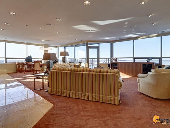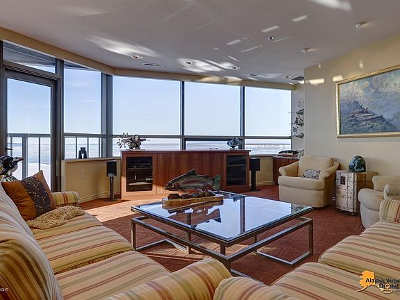 Urban Gem! A rare opportunity awaits, completely updated south west corner of the Peterson Tower. Unbelievable views: mountain ranges surround you, shining water of the inlet & city lights! Stunning open kitchen living dining area w/custom Lyptus wood cabinets, top end SS app, granite, travertine tile, custom lighting, Perfect serving bar w/ wine cooler, granite Baths same high quality finishes.The unit completed gutted: new plumbing, electrical, mechanical, air conditioning. Laundry room has wine storage area. One parking space & adjacent storage room. Owners rent a second space but, new buyer must get on a list for that second space. Custom electric blinds, custom TV cabinet.