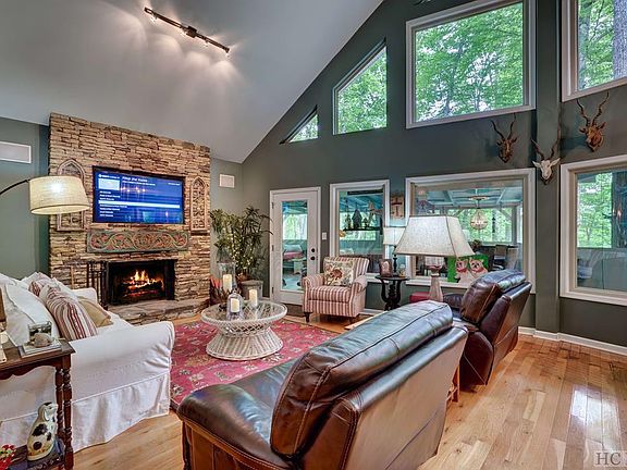Lake Glenville Deeded Water Access! 2017/2019/2021 upgrades, furnished, turnkey 2BR/2BA, Professionally lanscaped with mature native plantings. Large Primary Bedroom w/ensuite bath features a shower and jetted tub w/walk out private balcony, perfect for a hot tub if desired. Beautiful rare all one level living w/vaulted ceilings throughout with a beautiful window wall in living room, gas FP (can be converted to wood burning if desired). Large gourmet kitchen w/granite, new upgraded 2021 gas stove/oven and wine cooler. This is truly paradise found when looking for a true mountain chalet getaway or a great rental property! Outdoor living area features a custom vinyl porch enclosure system to enjoy all seasons, living area large enough to entertain family and friends, Impressive outdoor living includes sofa, chairs, large screen TV, Al Fresco dining area, suspended daybed to relax enjoying the mountain fresh air, wonderful lake breezes and gas firepit for the cool summer evenings. New 2021 outlet 240V 40 Amp for charging your EV. Ring security system to manage thermastats and more. Close to Cashiers downtown and approx. 20 minutes to Highlands. Located in the Norton Falls area of Lake Glenville. Winter lake views. Nearby boat launch, hiking High Falls and Lake Glenville beach area. Lake Glenville encompasses 1450 acres and holds the distinction of being the highest elevation lake with 26 miles of tree-lined shores east of the Mississippi River. Enjoy all the water sports including water skiing, kayaking and canoeing. Also known for great fishing. Cashiers is known for it's beautiful waterfalls, hiking and many other outdoor activities. Come and enjoy all that the Blue Ridge Mountains of the Smoky mountains have to offer. Western North Carolina offers the richest natural gifts revealed in a dazzling display of mountains, rivers, waterfalls and streams. Nearby trout fishing, hiking, biking, local playgrounds, dog parks and more. Seller Financing available w/terms