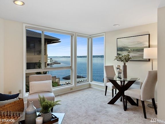Wonderful waterfront 2 bedrooms/1.75bath condo with lake view! Enjoy the peaceful scenery of Mt. Rainier, Downtown Bellevue, Cascades, & the morning sunrise off the dock. Cozy wood burning fireplace in the living with large windows connected to the kitchen, great for entertaining. Private dock for sun tanning/leisure time & 72hr moorage. Close vicinity to Leschi Marina, shops, restaurants and parks. 1 assigned parking. Strong HOA & well-maintained building. Newer roof, siding & windows.