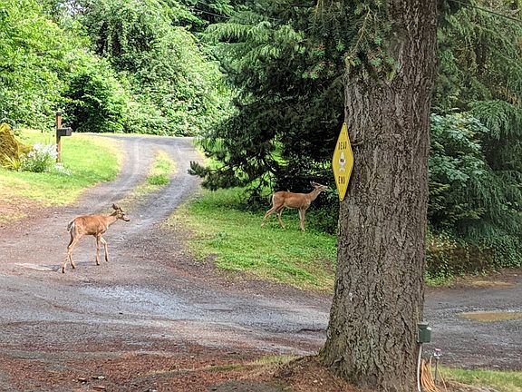 Recently renovated split-level urban farm home on quarter-acre with forested Singer Creek Park in backyard. Quiet, dead-end street with two bus lines nearby, and only five minutes to Grocery Outlet, Safeway, or mainstreet downtown Oregon City! Rent your own room on the main level with a view of the wooded park over our little farm. All utilities included, pets negotiable, easy month-to-month terms. Secure off-street parking, decks, comfortable common spaces with fireplace, large 4k tv, fiber broadband wifi, front-load laundry in basement. House shared with a corgi dog, three cats, and six chickens. (A) Single bedroom, 120 sf, standard closet, west window, shared tub/shower bath in hallway, $600 inclusive, deposit same, $100/pet monthly, avail. 1 April (B) Ensuite bedroom, 200 sf, private shower bath, standard closet, west window, $1,000 inclusive, deposit same, $100/dbl. occupancy, $100/pet monthly, avail. 15 April All rent is inclusive (all utilities included). Security deposit is same as base rent. Second month pro-rated as applicable. All applications with background check paid direct, per renter, through Zillow application with required 2.5x rent income documentation provided, min. 620 credit per renter. Unfurnished bedrooms in furnished house. Portable a/c available for each bedroom. Pets negotiable based on temperment with existing pets for additional fee. Optional double occupancy for larger space for additional fee. No smoking, 420 negotiable at deck. No additional storage available. Unlimited free chicken eggs!