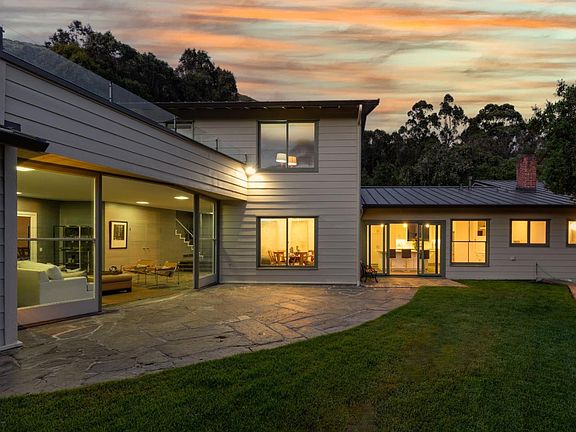 Nestled into a 2.8 acre rolling hillside in Carmel Valley is this expansive home designed by William Wurster, California architectural icon and namesake of UC Berkeleys school of architecture. Available for the first time in 65 years and just updated, this family house has 5 Bedrooms plus 4.5 bathrooms (3 en-suite), multiple rooms suitable for offices or family rooms, large basement and a finished three + car garage. Newly added features include custom kitchen cabinetry, fresh appliances, standing seam metal roof and central air conditioning HVAC. Signature Wurster touches include dramatic stone and oak flooring, high ceilings, South facing floor-to-ceiling glass doors in the indoor/outdoor living room with dramatic views of Garland Park, multiple fireplaces and Ponderosa pine paneled wet bar. The upstairs family room or study boasts a sun deck with outstanding views. Included is a building once used as a dark room that might serve as an office or ADU.