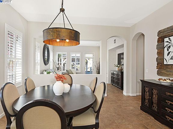 Discover the epitome of luxury living in the heart of San Ramon's prestigious Bridges Golf Course community! Spectacular "Rialto" single-story model offers a blend of elegance and comfort! Located on a quaint court, this 3 bedroom, 2 full bath residence offers an extraordinary amount of upgrades and designer touches throughout! Beautiful tile flooring with custom limestone entry, new carpet, plantation shutters in every room, fresh exterior & interior paint. Recently updated eat-in kitchen with extended countertop space, separate dining room for carefree entertaining. Inviting living room with cozy fireplace, upgraded brick TV niche and access to a spacious backyard featuring a 10x12 gazebo, water fountain, flagstone and brick patio, custom pizza oven, raised vegetable beds, lawn area and even a mini vineyard with 12 merlot grape plants! Close to award-winning schools, commute routes, City Center & Bishop Ranch! This is a rare opportunity to own a single-story gem in a sought-after neighborhood. PLUS a neighborhood park & pool! Don't miss your chance to experience the Bridges lifestyle at its finest. WELCOME HOME!