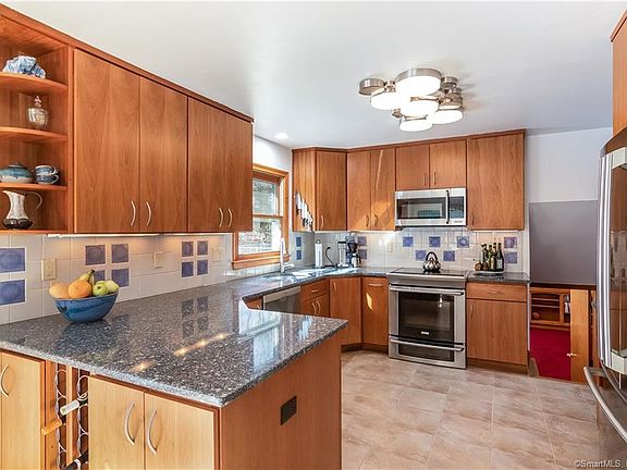 Set well off the road, this 1971 Contemporary Split has been extensively renovated and has new septic, roof, siding, windows, kitchen and more. The main level includes the spacious living room with large windows, the dining room with sliders to the deck and the beautifully remodeled kitchen with cherry cabinets, custom tiled back-splash and composite stone counters. The stainless steel appliances, including an induction cook top, complete the updates in the kitchen. All four bedrooms are upstairs and they all have beautiful hardwood floors that have been recently refinished. There is an en suite bath in the master bedroom and a full bath in the hall that serves the other three bedrooms. A half flight down from the main level is the family room with a half bath and laundry room. There is an unfinished basement accessed off the family room. The two-car garage has a single overhead door that has an automatic opener and is EV-ready. There are attic spaces over both sections of the house. The new septic system is in the front yard. There is a spacious backyard. This house has great curb appeal. The yard has an old New England stone wall. Sited on a slight rise, the sweeping front lawn is great for play activities and is a gentle sledding slope in the winter. The back yard has lawn area, a fenced-in garden area and a lightly wooded rear parcel. Want a pool? There is plenty of room in this back yard. There are beautiful perennial gardens that have been organically maintained. The ground-level deck is a big draw in the summer time. The location is only minutes to the town, schools, Route 1, and all transportation hubs. The work has been done! All a new owner has to do is turn a key to enjoy this special home.