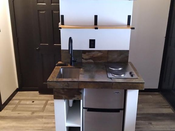 Live in the mountains in the beautiful historic mountain town of Silver Plume! Outdoor lover's dream with Brewery Spring flowing in back. Birds and wildlife abound! Property adjacent Clear Creek River. Hiking and biking trails nearly out your front door. Newly 100% remodeled Studio Apartment available 12/1/2022. New barnwood reclaimed wood look luxury vinyl flooring throughout, ceiling fan with light, large sliding window with blinds, storage closet, covered front porch with exterior entry, fresh paint and easy to keep clean! Bathroom has a full size shower/tub combo with stone wrap, mirrored medicine cabinet, and nice vanity. Kitchenette area with slate counters, refrigerator with separate freezer, deep stainless bar sink, two burner stove and floating storage shelves. Close in off street parking. Ranch style for easy access (no upstairs neighbors!!) All utilities are included (water, heat, sewer, trash, electric & high speed Comcast internet) in the price of monthly rent. Cats will be considered for an additional monthly pet rent of $25 per cat per month. Close proximity to Silverthorne, Frisco, Dillon, Georgetown, Empire, Breckenridge, Winter Park and Idaho Springs. Deposit of $1200 and last months rent = $2400 required upon lease signing.