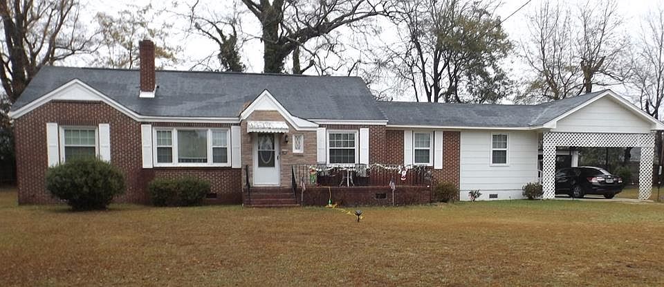 Brick, well cared-for one story home in the town of Manning, South Carolina. New roof in 2018. New heating/air system and windows in 2015. Original hardwood flooring in many rooms(some with carpet over them at this time)Wood burning fireplace. Attached carport plus a large detached storage building and 2-car carport. City tennis courts just down the street. Appointment necessary to show.