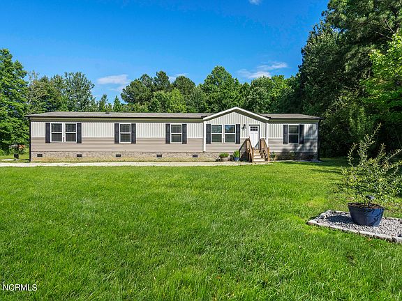 2 acre homestead tucked halfway between Burgaw and Wallace is just want you've been waiting for! Built in 2022, this manufactured home includes 4 bedrooms, 2 full baths, central open common area, separate laundry/mud room with access to backyard. Low maintenance, neutral flooring; blonde/ash toned cabinetry & trim; stainless appliances, kitchen island with seating for 4 among features. Primary suite includes attached bath with dual vanity and oversized closet sits at one side of layout, while additional guestrooms and shared hall bath are opposite. Mature foliage edges the property, affording equal parts privacy and shade. Greater community rooted in agribusiness, equestrian recreation, camping and conservation. Just 35 miles to historic Wilmington, 40 mile commute to Camp Lejeune main gate, or 90 miles to Raleigh. Enjoy thriving tourism and recreation throughout tricounty - with historic sites; renowned beaches and golf courses; diverse shopping, dining, and entertainment accessible for all tastes.