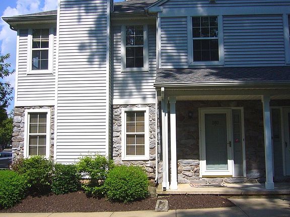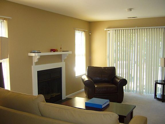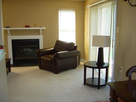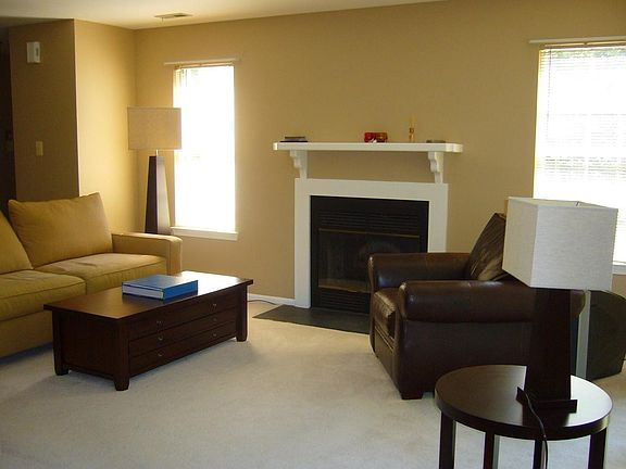 Beautiful & MODERN "TWO STORY END UNIT" situated on a PRIVATE PREMIUM LOT FACING THE WOODS. One of the absolute BEST LOCATIONS in the neighborhood! This home features pristine neutral decor throughout starting with a large relaxing living room that features a lovely fireplace, a large dining room with hardwood floors plus a spacious eat in kitchen. Upstairs there are two large bedrooms with each having its own bathroom. The master suite overlooks the wooded area with four large windows for a wonderful view and lots of natural light. The master suite also features a deep window sill to enhance as you please plus a large walk in closet and private bath. The second bedroom is very spacious and has ample closet space plus its own hallway access bath. Washer and dryer are conveniently located on the second level. Newer neutral carpeting and paint throughout. Truly a serene & peaceful location situated at the very back of the neighborhood facing woods. This home is absolutely move-in ready! Conveniently located near shopping, parks and walking trails. A short distance to major roads yet tucked away in its own private location.