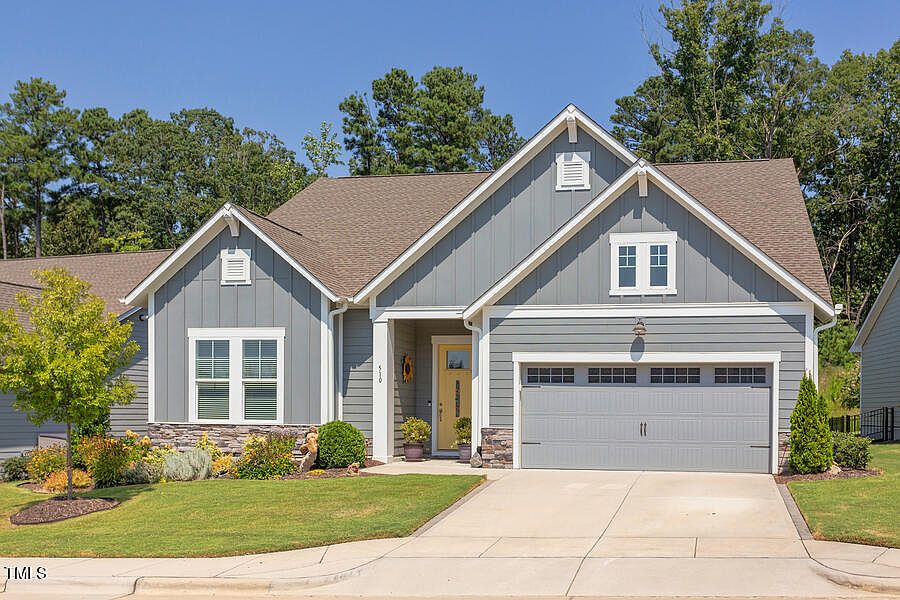 Welcome to Encore, a vibrant 55 & over community in Chapel Hill. Custom design & meticulous craftsmanship make this truly one of a kind. The exterior features mature plantings, a charming pollinator garden, & a distinctive stone wall, setting a welcoming tone from the start. 4 bedrms & 4 1/2 baths. The main floor is graced w/ elegant hardwood EVP flooring throughout most of the spaces. The primary suite stands out w/ its tray ceiling, spacious bath featuring dual vanities, a walk-in shower, a separate water closet, & a generous walk-in closet. In addition, there are 2 more bedrms, each w/ its own private bathroom. The heart of the home is the chef's kitchen, which includes a 36-inch gas cooktop, a stylish hood, quartz countertops, glass-front cabinets, a wall oven & microwave, a built-in Bosch coffee-espresso maker, & pantry. The spacious sunrm, equipped w/ its own mini-split system, offers a year-round retreat w/ serene tree views. Upstairs, a large bonus rm, an additional bedrm, & a full bath. Only a few miles to Grocery,Dining, & Medical