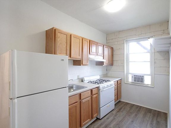 This large single bedroom apartment contains a fully equipped kitchen, w/ lots of cabinets. Third floor apartment. Private covered balcony. Hardwood floors. Bright and spacious interior. Heat included with rent. Plenty of street parking available. Cats are allowed. Secure building with an intercom system. In addition to the monthly rent, tenant is responsible for electric. All of our apartments are non-smoking. In addition to the monthly rent, tenant is responsible for cooking gas and electric. Heat included with rent. Cats are allowed.