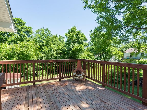 Trees and nature surround this 3 bed / 2 bath doll house in the heart of De Soto. Located at the end of a dead end street, you have the feel of the country, but the convenience of living in town. This home has been well maintained and loved by the owners. An open combination kitchen / living room plan is comfortable and easy to manage. Access the deck from the kitchen for grilling or relaxing... The master bedroom is huge! It feels like an oasis...the master bath is updated and has a jetted tub to enjoy. There is enough room to create your own special sitting room, craft area or office. The other two bedrooms are nice sized as well. The hall bath has also been attractively updated. Downstairs is partially finished. Make it your family room or use it for for special occasions when you have a large group of family or friends over. Walk out to a large private patio that backs to trees. The patio has a large Sunsetter fabric awning to open when you want additional covered space.