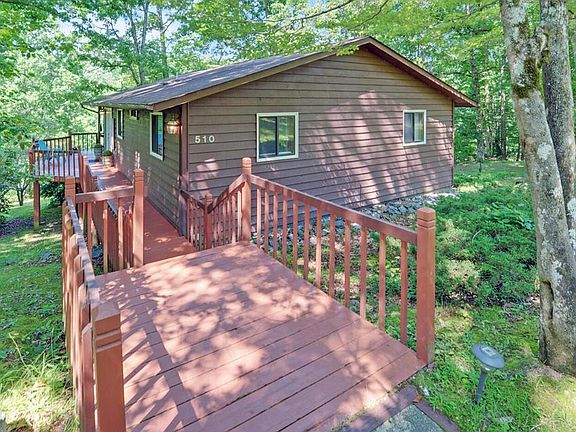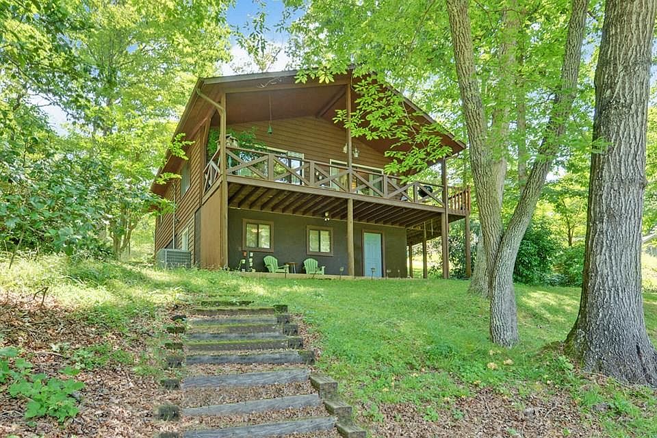 Tired of tight lots and rules? This 2-acre ranch offers freedom, privacy, and room to breathe. Start your mornings on the covered porch with coffee in hand, a gentle branch nearby, and space for pets, gardens, or play. Inside, the updated kitchen with breakfast bar is perfect for casual meals and easy entertaining, while French doors connect seamlessly to the deck. The great room's wood-burning stove brings a warm welcome after a long day. The primary bedroom is on the main floor, and thoughtful upgrades like central air and double-pane windows keep life comfortable year-round. A finished walk-out basement adds a family room, bonus room, full bath, and laundry, ideal for guests, hobbies, or work-from-home flexibility. Outside, a lower patio leads to a manicured lawn, and the private well is shared with just one neighbor. Located minutes from scenic drives, trails, local dining in Murphy or Andrews, and Harrah's casino and entertainment.