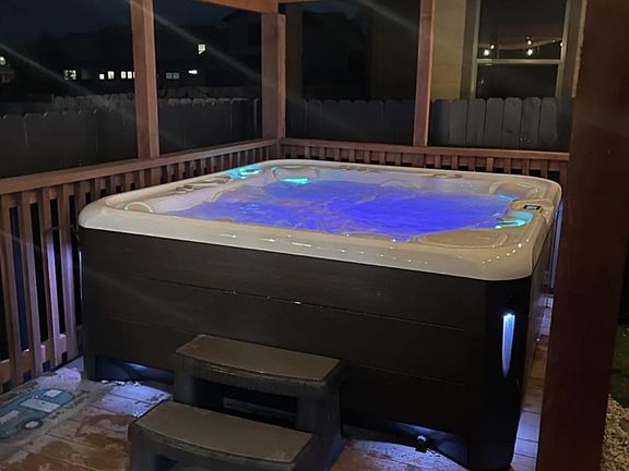 Each tastefully decorated bedroom has a queen bed, and the master bedroom's en suite features 2 sinks and plenty of natural light! This home has it all, including a private hot tub, grill, and fire pit in the backyard!