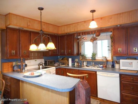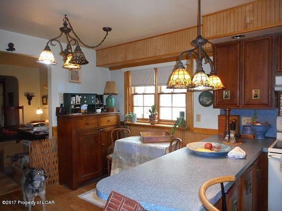 5 Bedroom home w/hardwood floors, Stone fireplace in living rm, Large 4 season sun rm, Dark room & workshop in basement, Attached garage w/ off street parking for 4 vehicles...and many upgrades include some new windows, stained glass fixtures, and alarm system. Fenced in yard with unique landscaping/fruit trees & sheds. Per seller, gas is available in neighborhood if buyers wish to change heat.