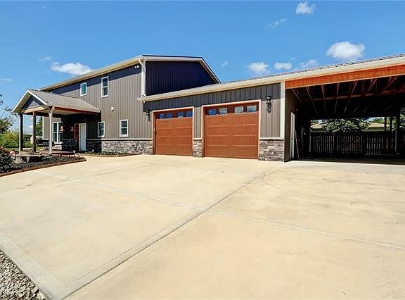 Absolutely STUNNING 1.5 story Shouse (House+Shop) that sits privately in the back of 2.27 acres! Custom built with a well-thought-out floor plan and so many upgrades! Sellers are offering $2,000 towards buying down your interest rate OR applying to your closing costs AND a 1 year home warranty with an acceptable offer! Only 2 years young, this is the PERFECT combination of living space with a workshop/storage outbuilding for running your business OR for storing all of your boats/RV/ATVs. Enjoy main level living with the Laundry Room and Master Bedroom on the first floor. LARGE kitchen with spacious pantry, tons of cabinet/counter space and stainless steel appliances that stay with the property. The Master Bedroom features a storm shelter room w/Emergency Security Preparedness Safety Shelter, walk-in closet and master bathroom. Master Bathroom features double vanity, soaking tub and HUGE tile shower. The entire main level boasts radiant floors. Upstairs has a second living room area, 3 bedrooms, full bath and an office. Walk outside from the kitchen and you will find a fenced backyard with covered patio and a HOT TUB that stays with the property. 60'x40' heated and cooled outbuilding is connected to the house and currently being used as a woodworking shop. Built with 6" walls and fully insulated. Bonus room in the back of the shop that has it's own half bath. 2 - 200amp panels service the house and shop. Outlets for welders and RV hookups.