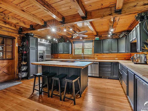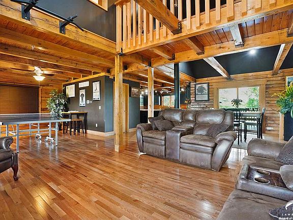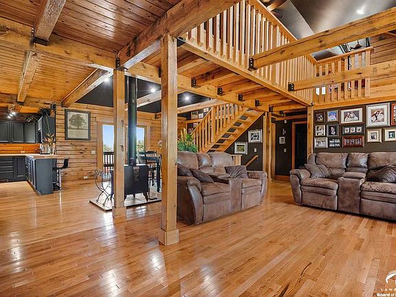 Beautiful log cabin home with breath-taking views. Enjoy the privacy of 10 acres w/ freshly planted lavender and pond. This home boast 4 car garage and an indoor pool in a separate addition. Also has a 24'x30' shop/garage for additional storage. Open floor plan with warm wood and Radiant heat in basement floor will keep you warm year round. This home won't last long. Come see today.