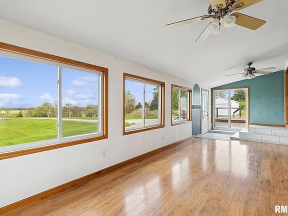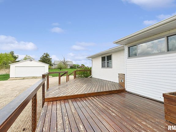 What an opportunity! ACREAGE! A 3-bed, 2 1/2 bath ranch on the edge of Clinton with 1.6 acres. This home has a wonderful open-concept layout with a ton of large windows and natural light. The living room features a stone fireplace with a gas insert. You won't believe the size of the primary suite with an attached bathroom and a huge 10x7 walk-in closet with built-in cabinetry. You will absolutely love the back deck overlooking rolling cornfields and the beautiful sunsets. This property also includes a 2-car detached garage. New furnace/AC in 2024, new garage roof in 2025. Schedule your showing today to walkthrough this beautiful property!