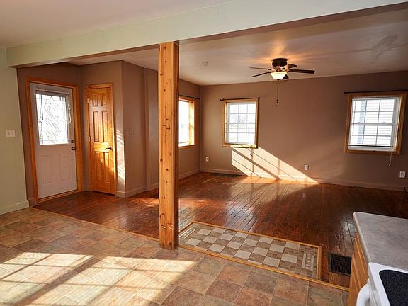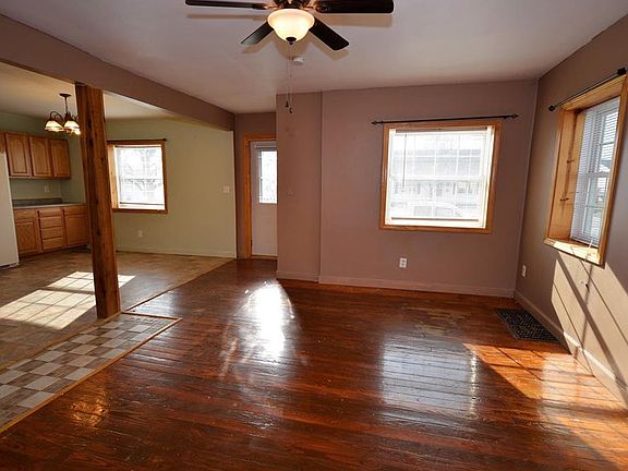 Single story home with plenty of charm and updates. The overall layout of the home is very basic: Open area to the front of the home containing the Living, Dining, and Kitchen area, and Two Bedrooms and a Full Bath to the Back of Home. Kitchen contains oak cabinets, laminate counters, and all appliances stay. Both Bedrooms have wood floors and ample closet space. Basement contains a full bath (2 total), washer/dryer area, and smaller kitchen/canning area. Many updates, just needs a fresh touch.
