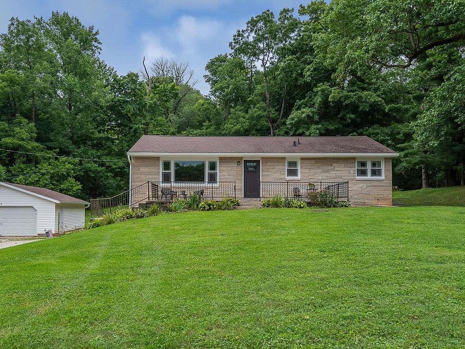 This lovely limestone ranch with mostly finished walk-out basement features 3 bedrooms, 2 baths, living room and large family room, all located on a park-like 2 acre setting with pond, fire pit and charcoal camp grill. You'll love the spacious detached two-car garage. The home features a front porch and a newly updated rear deck. Additional recent updates include new windows, doors, and roof (roof is 8 years old). Convenient location to Bloomington and Ellettsville, this home is in RBB school district.