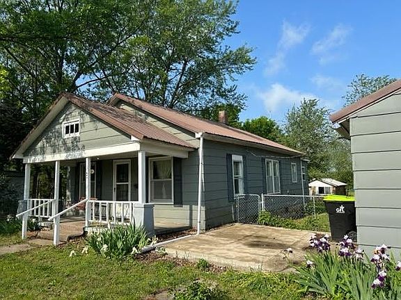 This Charming 2-bedroom 1 bath home is located on a corner lot with a large fenced in backyard. The original Hardwood floors and craftsman style trim and molding showcase the charm of this home's history and time. There are lots of extras with this home, including a lovely covered front porch, Metal Roof, storm entrance to the basement, New Wiring, Duct Work and Furnace, Hot water heater and water filter all added in the last few years, a large 25x17 detached garage and additional stone outbuilding in the backyard that could easily