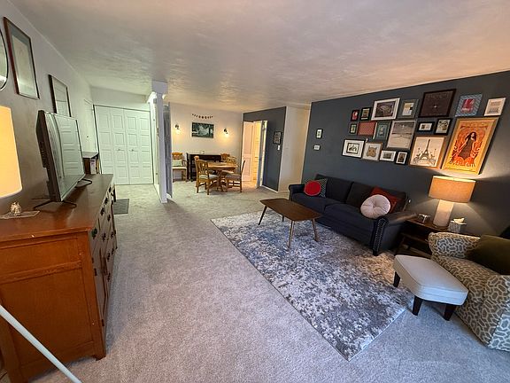 If you want to live in a gorgeous, quiet, very special condo that's a half mile from State Street in Media, "One of the best places to live in America", please read on. But we need to be upfront about no pets: If you need a place that accepts pets, or allows them to visit, this is NOT the condo for you. Many rental applicants asked for an exception; the HOA restricts pets. The pristine, 775 sq. ft. one-bedroom condo is accessible through a secure building door that leads you into an art-filled communal hallway. The mid-century modern Hickory Hill architectural style is reflected inside the unit with new lighting fixtures and new cream wall-to-wall carpet. There is a private entry area inside the unit with a large coat closet and Moroccan screens that open into the roomy dining area. This connects to the spacious south-facing living room with loads of natural light. Sliding doors lead out to the sun room, which can be used as an office, den, workout/yoga room, studio, etc., and is lined with exposed brick and plantation shutters. The utility closet is connected here with additional storage. The cozy and bright galley kitchen features classic cream cabinetry, offering a clean and timeless look, along with white appliances and plenty of counter space for meal prep. The roomy bedroom has a sliding window with plantation shutters and two large closets; the bathroom has a tiled bathtub/shower combo, tiled floor, and a modern vanity. The hallway hosts a stacked washer/dryer, a linen closet/pantry and storage closet with upgraded electrical box. The condo features central a/c, forced hot air electric heat; water is included. Tenant pays electric, phone, internet and cable. NO PETS. No smoking. Occupancy is maximum 2. This Beautifully maintained and safe complex is 80% owner occupied and has reserved parking and additional on-site/off-street parking for guests, plus a space to wash your car on the premises. First, and last month's rent, and security deposit, due at signing. One year lease; available March 1; water is included. Tenant pays electric, phone, internet and cable. No pets. No smoking. Occupancy is maximum 2.