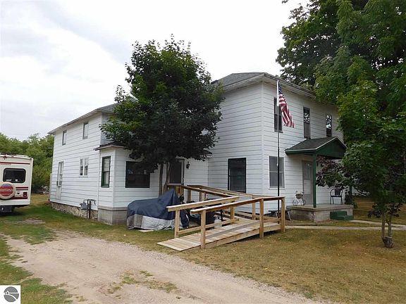 Mancelona Home, 5 Bedrooms, 2 Bath. Downstairs has been completely remodeled with updated bathrooms, walk-in tub, new kitchen, remodeled master bed & bath. Pellet stove, large 1.4 acre lot with fruit trees, 24'x28' garage, covered porch, deck and storage shed. 3 bedrooms upstairs in need of updating, wheel chair ramp and more.