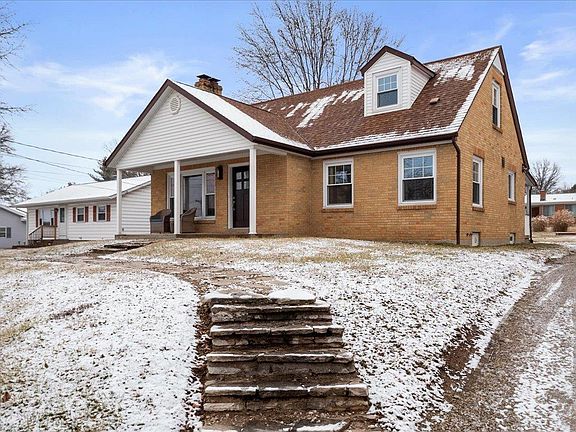 This stunning 4-bedroom, 2-bath home has been thoughtfully updated with modern touches throughout! Enjoy renovated bathrooms and kitchen, along with new plumbing, light fixtures, doors, and more. Gorgeous wood floors add warmth and character, while the electric fireplace creates a cozy atmosphere. The kitchen boasts stainless steel appliances, and built-in eating area benches, which are included. One main floor bedroom is currently used as a dining room, adding versatility to the layout. The unfinished walk-up basement offers plenty of potential and a water softener adds life to your appliances! Step outside to a covered patio, storage shed, and charming garden—perfect for outdoor enjoyment. With so many upgrades, this home is truly move-in ready.