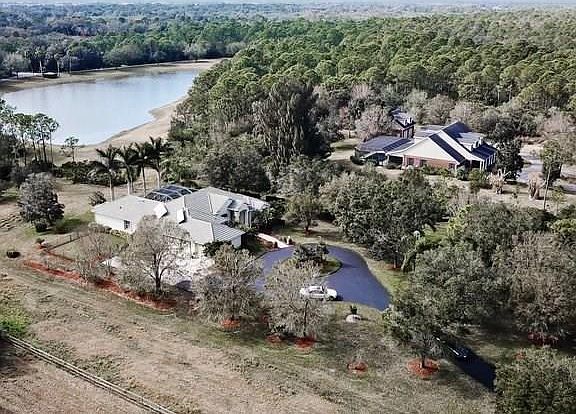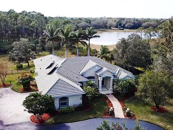 Wow! This beautiful, professionally maintained 4 bedroom, Peterson- built home is situated on over 7 pristine acres in the exclusive Myakka River Trails gated community. Enjoy stunning lake views, tropical palms and wooded seclusion. The split floor plan provides privacy for all family and/or guests and has an impressively large master bedroom and bathroom suite. The house then opens up with six sets of sliders for entertaining or family gatherings and a commanding view of the lake. The bonus room overlooking the lake would be your Café/Wine room. The oversized 2 car garage has a 3rd separate garage to be used as a workshop or studio. Some Amenities include: Solid wood cabinets, etched glass doors, walk in pantry, chefs kitchen with built in desk and newer upgraded appliances, granite counters, walk in closets, pocket doors, marble flooring, loads of storage, custom window treatments. Outdoors is a fenced area for pets, and Travertine pavers in pool, waterfall, spa and front walkway areas. The energy efficient home with solar system has tinted Thermopane windows. The drive way is recently seal-coated. The Myakka Trails amenities include a club house, community pool and spa, lighted tennis courts, playground, bridle paths, nature trails and community boat dock. HOA fees are to include a comprehensive Frontier television, internet and telephone service package.