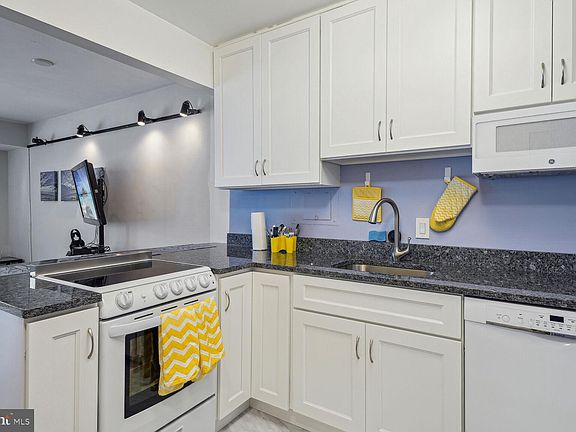 Welcome to your new home in the heart of Southwest Waterfront, DC! This charming studio co-op features an inviting entry foyer with a coat closet and an open floor plan, perfect for modern living. The updated kitchen boasts granite countertops, ample cabinetry, and high-end appliances, including a built-in microwave, electric range, Bosch dishwasher, and disposal. Enjoy casual meals at the counter island with seating for three. A sliding glass door opens to a Juliette balcony, offering natural light and views of a quiet, serene, tree-lined street. The versatile layout allows for distinct living, sleeping, and working areas, with a privacy curtain for the sleeping zone and remote-control track lighting for ambiance. A private hall lined with closets leads to the full bath, complete with a tub, medicine cabinet, fan with heat lamp, and tiled floor. Blocks from the waterfront and Metro! • Restaurants, Arena Stage, and more • Watch July 4th fireworks from the roof • Indoor pool, library, game room, onsite security • So much storage in your private hall to bath! • 3-panel slider glass door balcony to quiet side street • Updated kitchen (Bosch dishwasher) • Granite counters with dining space for three • Versatile living space