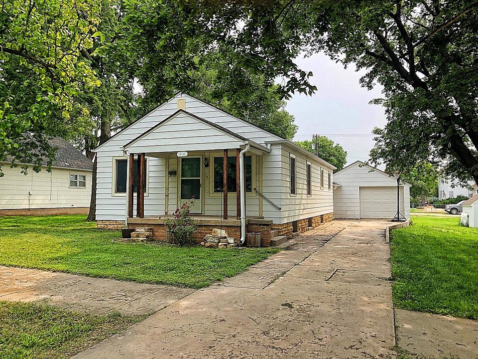 Modern Bungalo located in a quiet neighborhood adorned with beautiful trees that line Walnut Street. With a 20x24 two car garage, nice fenced in yard and a brick patio, you will enjoy your time well spent on this property. This home has new windows and beautiful hardwood floors with painted white trim. A modern renovated main floor bathroom, two spacious bedrooms. Charming built in storage areas in the hallway and an electric fireplace in the family room are just some of the features that you'll love. Offering a full basement with 2 rooms and another bath. White appliances included Home also has central heat and air. 942 sq foot main floor 94 sq foot brick patio