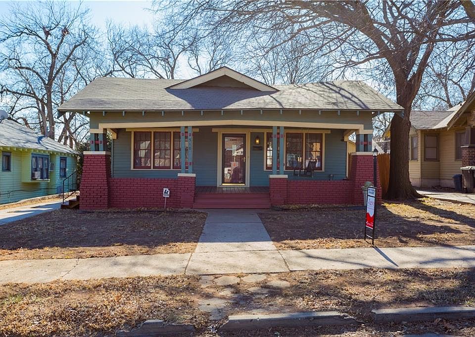Updated bungalow, move-in ready and walking distance to all of the galleries, shops and restaurants of the Paseo Arts District. Home features 3 bedrooms, 1 bath with spacious living room featuring a mock fireplace. Large, open concept kitchen with room for casual eat-in space. Huge front porch complete with porch swing. Kitchen and bath feature granite and comes with a complete appliance package including: stove/range, dishwasher, fridge and washer / dryer. Outdoor space is completely fenced and features a large wood deck. Don't miss this one!