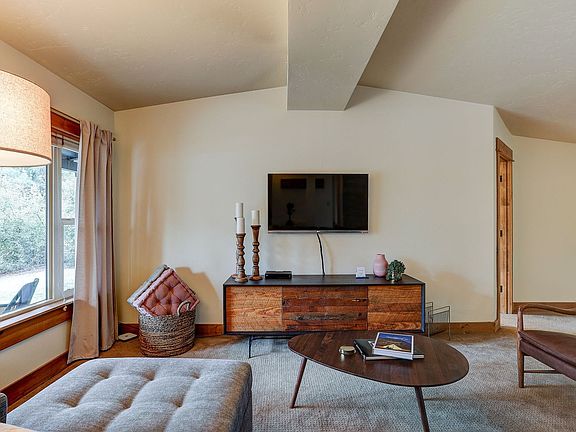 Enhancing your next trip to beautiful Bend, Oregon is easy to do when you book a stay in The Bend House. This inviting 3-bedroom, 2-bathroom retreat can welcome up to 8 guests at a time, including pets upon request. The Bend House is an ideal home away from home whether you're enjoying time in Oregon with friends or looking forward to quality time with family. Embrace the best of Bend living in this single-level home within the luxurious West Hills neighborhood. The Bend House is wonderfully within reach of downtown Bend shops and restaurants and also provides guests with easy access to area trails, parks, and The Old Mill. Guests who book their stay in The Bend House will be delighted with the space, light, and style that awaits upon arrival. This property enjoys an open concept floorplan adorned with large windows throughout that enhance the natural light flow and emphasize the view too. Decorative details like wood-wrapped windows and doors bring a cozy and welcoming aesthetic to the forefront of every stay. The living room in The Bend House hosts a plush gray and extended sectional sofa for guests to cozy up on that sits in front of a large flat-screen television. Vaulted ceilings in the living room further enhance the sense of space available for guests to enjoy. The living room opens up to the dining room and kitchen where visitors can make the most of serving up a home-style meal when cravings come calling. The kitchen in this home showcases a collection of modern appliances, custom oak cabinetry filled with cookware, and a large center island for added meal preparation space. The decorative multi-tone tile backsplash is a wonderful complement to the tiled flooring below. When it's time to enjoy a meal, guests can easily gather around the table for six that sits between the living room and kitchen. Getting a good night's sleep is simple in The Bend House. The master suite hosts a queen bedroom set as well as a writing desk, walk-in closet, and en suite bath as an added convenience. The second bedroom in the home hosts a full bed and walk-in closet while the third bedroom enjoys two twin beds, ideal for those traveling with little ones in tow. Pets are welcome upon request. Stepping outside is all it takes to find the fresh air and fun at The Bend House. This property enjoys a large private yard for guests to enjoy that's surrounded by towering pines. For a more all-season approach to taking in the view, guests can spend time on the home's covered porch as well. The yard at The Bend House hosts a bocce court when a little friendly competition is in order and there's plenty of space for dogs to run as well when travelers are enjoying a getaway with their beloved pet. Make the most of your Bend adventure and let trusted partner handle your accommodation details while you're in town.