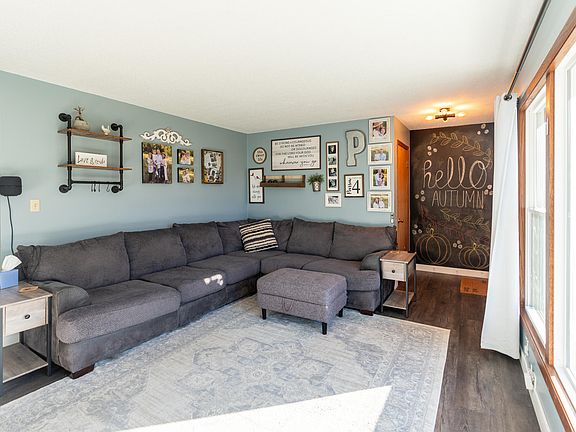 Welcome to this equisite 4 bedroom, 2 bathroom home featuring over 2,500 square foot of beautifully finished living space! Nestled in the peaceful embrace of a small town, this property has undergone extensive updates, making it the perfect opportunity for a discerning buyer. The heart of the home boasts a masterful addition featuring a spacious primary suite and kitchen remodel. This culinary haven is a chef's delight, equipped with state-of-the-art appliances, sleek countertops, and ample storage space (just check out the pantry!) The new flooring throughout the home provides a fresh and cohesive aesthetic, complementing the already very tasteful color palette. The thoughtful interior updates continue with an expertly finished basement, complete with a waterproofing system ensuring a dry and comfortable space year-round and egress window for added safety. Brand new flooring throughout, with new floor covering in the garage for added functionality and the consistent aesthetic. Flooded with natural light from the brand new windows offering a transferable warranty. Equally as impressive is the brand new exterior to include the roof, siding, and back patio. Perfect for enjoying those peaceful fall evenings. Practicality meets style with the new furnace and AC installed in 2020, ensuring you comfort in EVERY season. In every detail, this home reflects a commitment to quality, modern living, and comfort. With its blend of thoughtful updates, amble space, and a peaceful location, this residence invites you to experience the best of tasteful living. Don't miss the opportunity to make this meticulously updated property your own retreat! Call today!