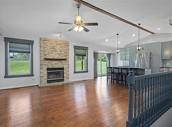 Beautiful Wentzville house that is Move In Ready! This home has 3 Large bedrooms with vaulted ceilings. Master bedroom has a bright bay window and attached full bathroom. There are 2 full bathrooms on the main level, a spacious Living room with a wood burninging fireplace. Fall in love with the stunning remodeled Kitchen with stainless steel appliances. Backyard is perfect for relaxing or entertaining, it even has a small custom basketball court. This home is located in a quiet subdivision in between 2 cul-de-sacs. Walking distance to elementary, middle and high school, old town Wentzville, shopping, restaurants and more! Don't miss your chance to call this amazing place home!